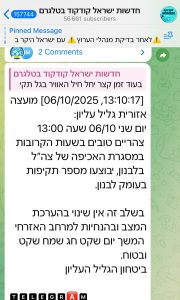 (قناة تيلغرام إسرائيلية باسم “חדשות בזמן”)