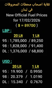 البنزين 95 أوكتان: مليون و785 ألف ليرة (+361000)
