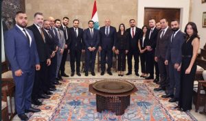 الى ذلك، إستقبل الرئيس عون النواب الموقّعون على اقتراح قانون تصويت المغتربين من بعبدا، الذين قالوا إنهم تمنوا على رئيس الجمهورية أن يطلب من الحكومة إعداد مشروع قانون معجّل وإحالته بمرسوم إلى مجلس النواب، لإصلاح الخلل القائم في موضوع انتخاب اللبنانيين المنتشرين.