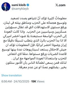 المحلّل سامي كليب: الإستهدافات قد تطال مسؤولين عسكريين وسياسيين من الحزب .