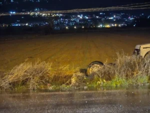 انقلاب سيارة واصابة امرأة في تعنايل .