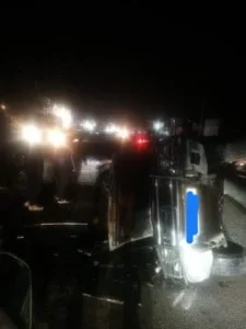 بالصورة- تصادم بين آليتين وانقلاب احداها على اوتوستراد الناعمة .