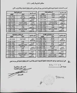 بالصورة- صدور برنامج الامتحانات الرسمية للعام 2026 .