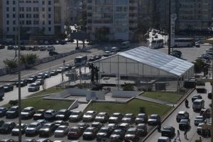 تم نصب الخيمة التي سيلتقي بها البابا لاوون الرابع عشر مع رؤساء الطوائف الإسلامية في ساحة الشهداء