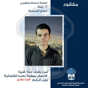 الذي غادر بتاريخ 6-12-2025 منزل ذويه الكائن في بشامون، ولم يَعُد لغاية تاريخه، علمًا أنّه يعاني من حالة نفسية غير مستقرة.