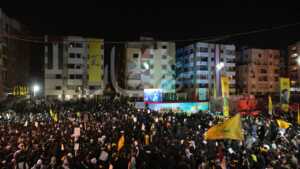 أحيا مناصرو “حزب الله” الذكرى السنوية الأولى لاغتيال الأمين العام السيد حسن نصرالله، في موقع اغتياله في الضاحية الجنوبية لبيروت.
