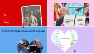 نشر البيت الأبيض سلسلة بطاقات رقمية بمناسبة عيد الحب، حملت طابعاً سياسياً ساخراً، وتناولت قرارات وأحداثاً بارزة خلال الولاية الثانية للرئيس الأميركي دونالد ترامب. إحدى البطاقات أظهرت الرئيس