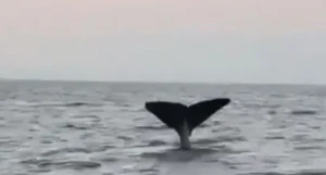 بالفيديو- حوتٌ ضخم يسبح في بحر لبنان .