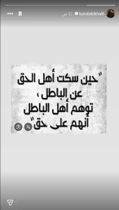 فقد نشر أبي خليل عبر خاصية “الستوري” على إنستغرام صورة كتب عليها: “حين سكت أهل الحق عن الباطل توهّم أهل الباطل أنهم على حق”، في خطوة رأى فيها المتابعون رسالة واضحة موجهة إلى حديث ماريتا عن تجربتها مع الطلاق في سن مبكرة، ولو من دون أن يذكرها بالاسم صراحة.