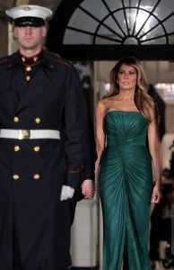 ستقبلت السيدة الأميركية الأولى ميلانيا ترامب، برفقة زوجها الرئيس الأميركي دونالد ترامب، ولي العهد السعودي الأمير محمد بن سلمان في البيت الأبيض مساء أمس الثلاثاء، حيث ظهرت بفستان سهرة أنيق باللون الأخضر من توقيع المصمّم اللبناني إيلي صعب.