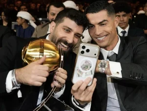 اللافت لم يكن التتويج فقط، بل طريقة الاحتفال، إذ صعد حدّاد إلى المسرح واحتفل بأسلوب مستوحى من النجم البرتغالي كريستيانو رونالدو، قبل أن يطلب مباشرة على المسرح النزول لالتقاط صورة معه، وهو ما حدث بالفعل وسط تفاعل كبير من الحاضرين.