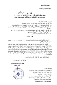صدر عن وزارة الداخلية والبلديات تعديل لبعض أحكام قرار منع سير الشاحنات في محافظتي بيروت وجبل لبنان، خلال زيارة البابا لاوون الرابع عشر.