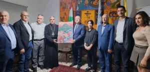 وفي الختام، قدّم الأب فرنسيس للوزير حيدر لوحة وطنية رمزية ممزوجة بعرق العمال ومعدات العمل، عربون تقدير لزيارته.