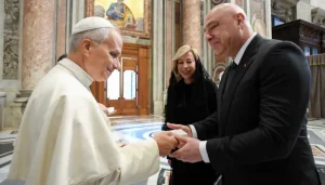 وقبل القداس استقبل البابا الرئيس عون وزوجته، حيث أكد رئيس الجمهورية “أن لبنان بجميع أبنائه في انتظار زيارة قداسته نهاية الشهر المقبل بفارغ الصبر وأن كل الترتيبات اتخذت لنجاح الزيارة التي شكره على تلبيتها”. وردّ البابا مؤكداً قيامه بهذه الزيارة التي “يريدها زيارة سلام ورجاء”. كذلك التقى الرئيس عون في مكان الاحتفال الرئيس الإيطالي سيرجيو ماتاريلا.