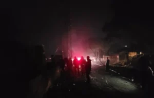 آثار الدمار جراء القصف الإسرائيلي على تجمع لصيانة الحفارات في منطقة الزهراني.