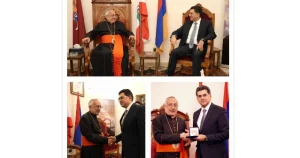 وبعد اللقاء، تحدث وزير الإعلام فقال: “تشرفت بلقاء صاحب الغبطة البطريرك ميناسيان، بتكليف من رئيس الجمهورية العماد جوزاف عون الذي شرفني بهذا اللقاء، وأبلغت غبطته تهنئة الرئيس عون وأطيب تمنياته بالأعياد المجيدة. كذلك أبلغني صاحب الغبطة تحياته إلى فخامة الرئيس وأطيب تمنياته له. وتخلل اللقاء عرض لأبرز التطورات والقضايا العامة في البلد، وأطلعته على جهود الحكومة في هذا العهد الرئاسي الجديد ومواظبتها على تكثيف جهودها في سبيل المصلحة العامة”.