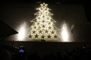 في الحي ذاته، تزيّن كرات حمراء أغصان الأشجار على جانبي الطريق بينما أنارت بعض المتاجر واجهاتها. وينادي باعة جوالون على العابرين لشراء القهوة أو الكستناء المشوية.