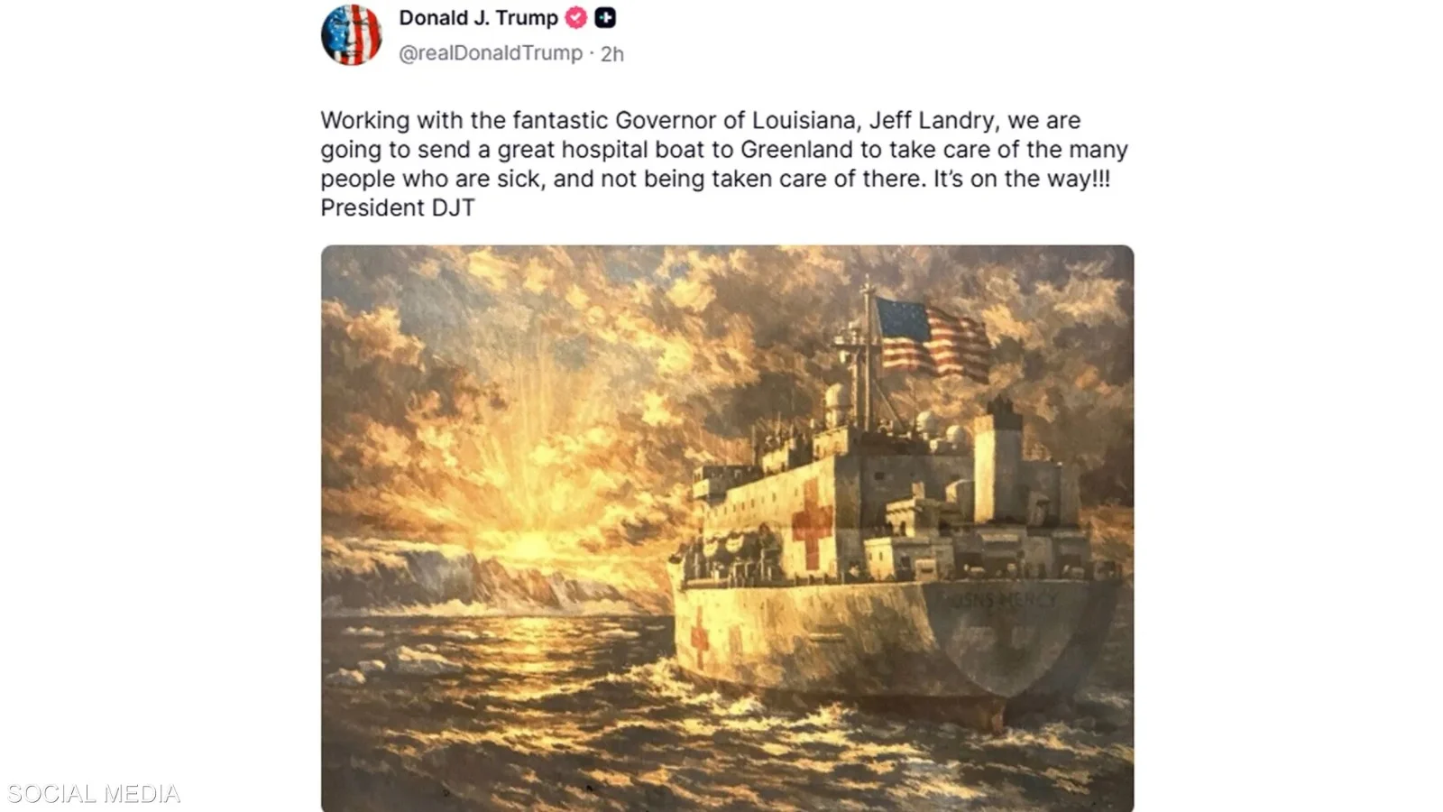عاد الرئيس دونالد ترامب إلى إثارة الجدل مجدداً بعدما أعلن أنه سيرسل سفينة مستشفى إلى غرينلاند، وهي منطقة دنماركية تتمتع بحكم ذاتي كان الرئيس الأميركي يهدد بالسيطرة عليها. وتسببت تصريحات