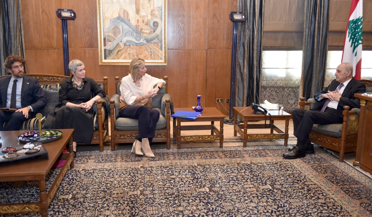 إستقبل رئيس مجلس النواب نبيه بري الممثلة الخاصة للإتحاد الأوروبي لحقوق الإنسان كايسا أولونغرين والوفد المرافق، في حضور سفيرة الإتحاد الاوروبي لدى لبنان ساندرا دو وال، حيث تم البحث في