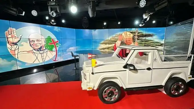 وصلت سيارة “البابا مومبيلي” الى استوديو تلفزيون “تيلي لوميار” الّذي جُهّز بديكور خاصّ يليق بالعرس الكنسيّ المرتقب واستعدادًا لزيارة البابا لاوون الرابع عشر المرتقبة، حيث سيستخدمها في بعض تنقلاته خلال